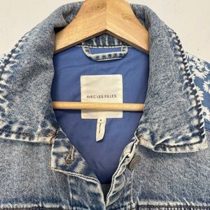 Anthropologie Avec Les Filles Patchwork Selvedge Denim Jacket Floral Jean Jacket