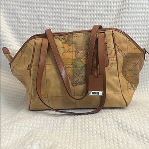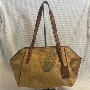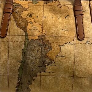 Explore the world in style with the Alviero Martini Tan Map Print Women's Bag. This unique accessory features a captivating map design, perfect for the adventurous spirit. Crafted with quality and elegance, it's a must-have for any fashion-forward wardrobe.