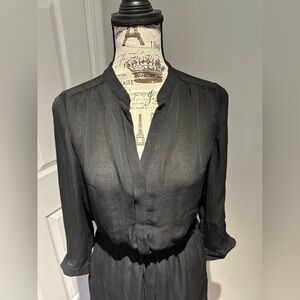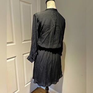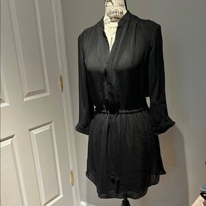Aritzia Babaton Silk Chic black dress with long sleeves. Tie waist, button top. With pockets! Waist is stretchy and top has button. Top is slightly sheer, bottom skirt part is lined and not sheer at all. 100% Silk. Perfect for any occasion.