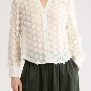 NWT Women’s Small Adrianna Papell Y Placket Button Up 3D Flower Blouse.