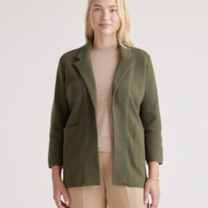 The boyfriend crew has an oversized, cropped silhouette, with ribbed detail on cuffs and hem. It's made from 100% organic cotton for a soft, slouchy vibe. It has a versatile look, ready to be worn under your favorite coat but chic enough to wear standalone—or even dress up for brunch.