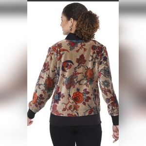 Susan Graver Floral Full Zip Up Bomber Jacket Women's Size L.New No Tag.