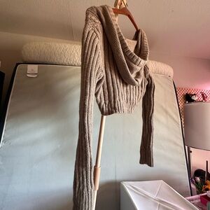 This Aerie cardigan in a warm tan hue features a stylish cable knit pattern and a cropped design that sits perfectly at the waist. The buttons and long fitted sleeves add a touch of elegance, making it a versatile piece for any wardrobe.