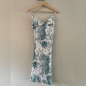 Adjustable straps. Ties in the back. Never worn. No smoking or pets.