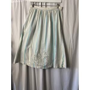 Vintage 100% Cotton Striped Skirt with Embroidered Detail Size M
