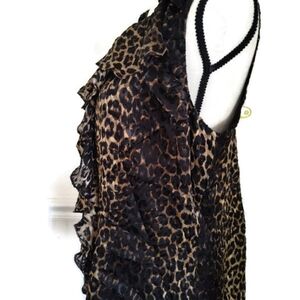 Dana Buchman Silk leopard Print Ruffle Sleeveless Top Size 14