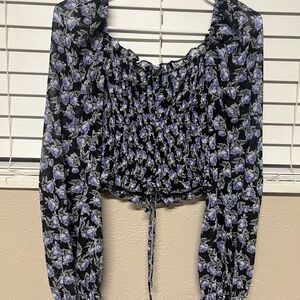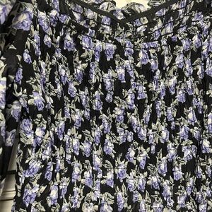 Papaya Black and Blue Smocked Blouse with Puff Sleeves