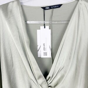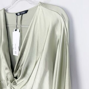 ZARA | NEW Sage Green Twist Front Cropped Bell Sleeve Top Women’s Size Large