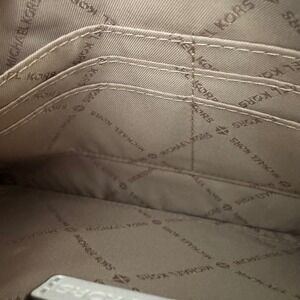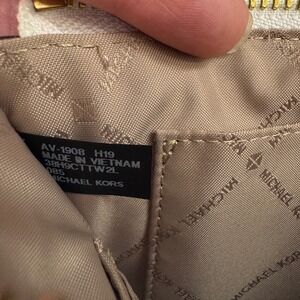 Keywords: Michael Kors, wristlet, clutch, handbag, white leather, MK logo, zip pouch, designer bag, evening bag, small bag, accessory, fashion, women's bag, gift, pouch