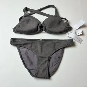 PilyQ Sand Reef Ring Triangle Top & Full Bottom 2 Pc. Bikini Set Size Medium NWT