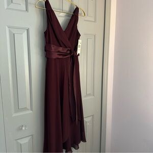 Jones Wear Dress Burgundy Cocktail dress with satin bow. Midi Dress Size‎ 6 NWT