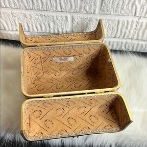 Elegant floral tapestry box bag featuring gold accents. Perfect for adding a touch of vintage charm to any outfit.