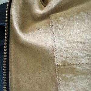 Originally this bag was $745 new. The leather is soft and buttery, with a pebble finish and still has that *new leather” smell. The interior is in a very soft sand colored (to continue the Pacific Ocean motif) suede.