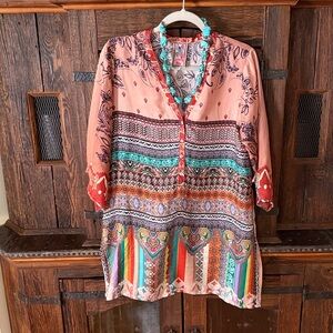 Fabulous and RARE Johnny Was Biya Filone Hooded Medium Size Duster coat with intricate bohemian patterns of lions, horses, birds, fishes and flowers. I love the folklore pattern of animals and botanical designs.
