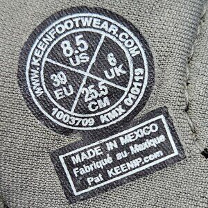 KEEN Whisper Sport Sandal in Black/Gray, size 8.5. Style# 1003709. Adjustable bungee laces, waterproof. Minor discoloration to uppers as shown in photos does not impact wear, good pre-owned condition.