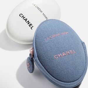 Brand new! Diors beautiful denim pouch and I attached 2 silver handles so it can be carried on the go! Very cute, and has a silver zipper across the top and has a Dior star charm on zipper. Wipeable interior lining for easy clean up.