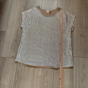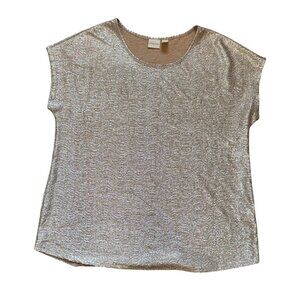 Chico's Silver Metallic Short-Sleeve Top Womens XL Casualchic Eveningwear