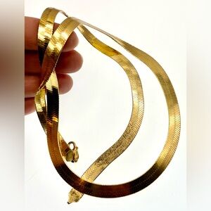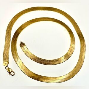 Gold Plated Long Wide Herringbone Chain Signed 925 Italy 30” Necklace Sterling Silver Estate Piece. 3/8” wide. Minimal signs of wear. Lobster Claw Clasp. In beautiful condition.