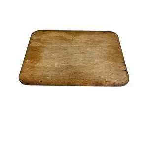 Midcentury modern wood tray with metal corners