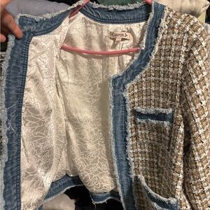 Nanette Lepore Long Sleeve Open Boucle Denim Trim Jacket