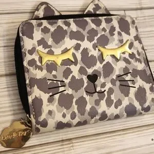 Womens Betsey Johnson Luv Betsey leopard print cat wallet. Super clean inside. Outside is in good condition. Some peeling on one corner. Please see last photo. In great used condition!