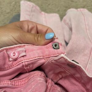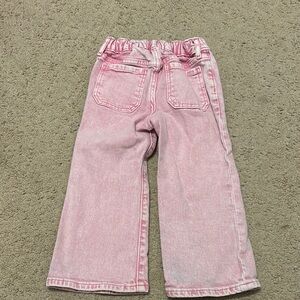 Stylish pink denim jeans perfect for kids. Comfortable and durable for everyday wear. Acid washed style. Bottom of legs look little blue in photos. Never noticed them before. Worn twice.