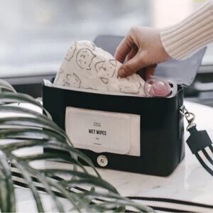 Stylish black crossbody bag with a sleek design. Perfect for everyday use. As a parent, you're constantly juggling more than you can carry (literally and figuratively). Having your hands free to carry your baby, chase your toddler, or hold them with one hand while you quickly change a diaper with the other, is all too familiar.