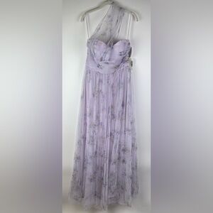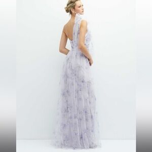 Dessy Collection FLORAL SCARF TIE ONE-SHOULDER TULLE DRESS WITH LONG FULL SKIRT