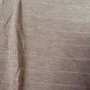 Stylish crew neck sweater. Soft fabric with subtle gold stripe pattern. Perfect for layering.