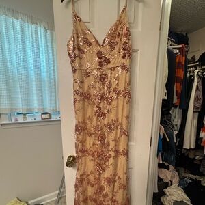 Lulus Shine Language Rose Gold Sequin Mermaid Maxi Dress Pink - Size L