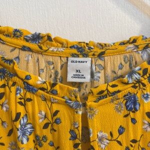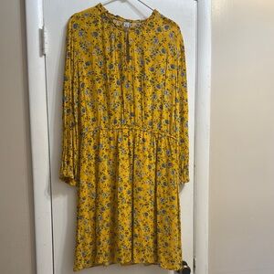 Charming yellow dress with blue floral pattern. Perfect for a sunny day. Skirt is lined.