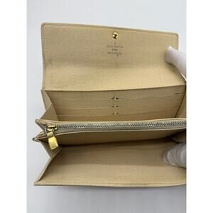 This wallet has normal wear on both the exterior and interior. Some minor rubbing is seen on the inside of the flap near the LV branding.