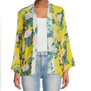 John Mark Mix Print Open Front Multi Color Tassel Detailed 3/4 Sleeve Kimono