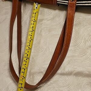 Eric Javits New York woven straw stipe bag with leather trim one mark inside bag noted in photos very good condition
