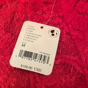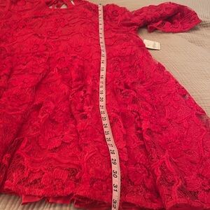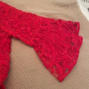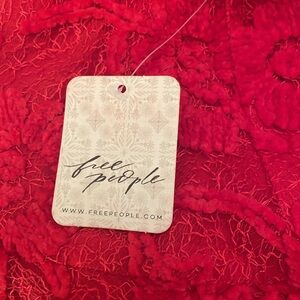 NWT Free People Le Fluer lipstick red, lace swing dress with removable cami liner. Size medium with relaxed fit, tie neck, 3/4 bell sleeves. A STUNNING dress. I was going to wear this NYE but the weather changed my plan. Would be beautiful for any occasion. Gorgeous with tights and boots or heals and sandals.