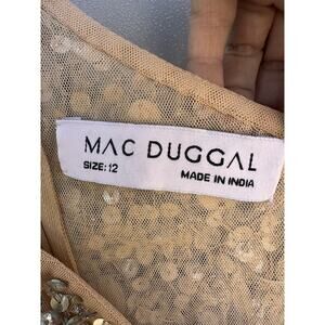 Mac Duggal 10977 Nude One Shoulder Asymmetric Sheer Hand Beaded Mini Dress Sz 12