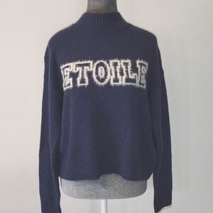 Stay cozy and chic in this statement-making French verbiage "Etoile" sweater from Hooked Up by IOT.