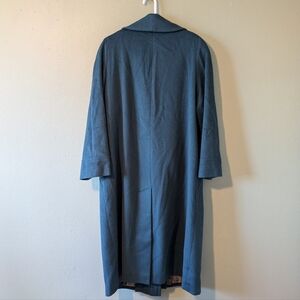 Vintage wool blend teal turquoise coat with pattern lining, long lapel, button closure, Double button and slant pockets. In excellent condition.