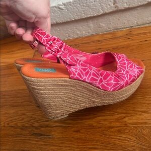 Vibrant multicolor striped sandals by Coach. Perfect for a stylish summer look.