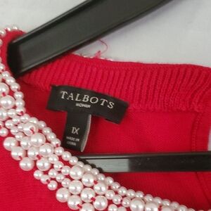 Talbots Red 3/4 Sleeve Relaxed Blouse with Silver Embellishments