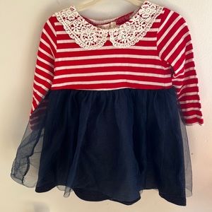 Charming kids dress featuring a delightful white and red design. Perfect for any occasion.