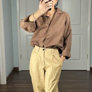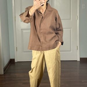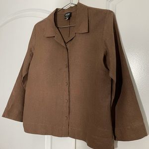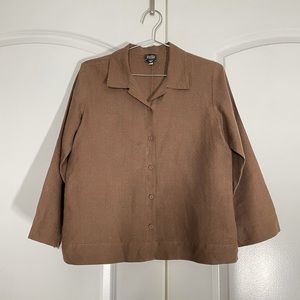 Eileen Fisher 100% Linen Boxy Cropped Brown Shirt size S