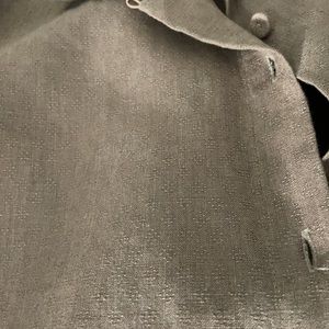 Essential Linen shirt that can be worn as a shirt ir a jacket. Linen has texture throughout and fabric covered buttons.