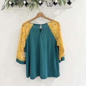 Modcloth Cactus Print Raglan Blouse New 1X Green/yellow New N266
