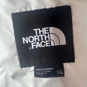 Stylish white hooded jacket by The North Face. Features bold logo on the sleeve.