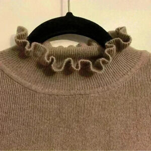 EVIDNT tan bell sleeve ruffle mock neck sweater, Women’s Size Small