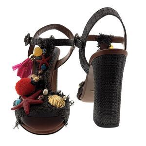 Dolce & Gabbana Women's Tropical Embellished Raffia High Heel Sandals-EU37