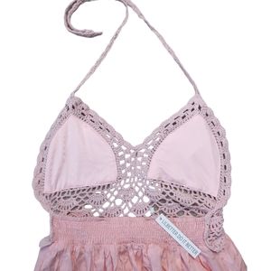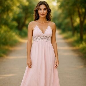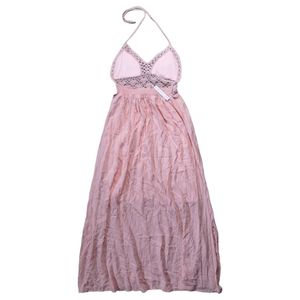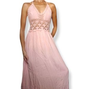 LilBetter Do It Better Peachy Pink Crochet Halter Open Back Maxi Dress Medium