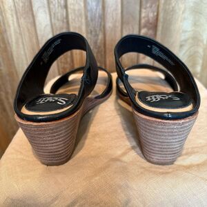 Sofft Ginetta Black Leather Wedge Heel Sandals Size 9