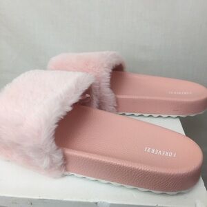 Forever 21 Pink Faux Fur-Trim Slide Sandel Sz L